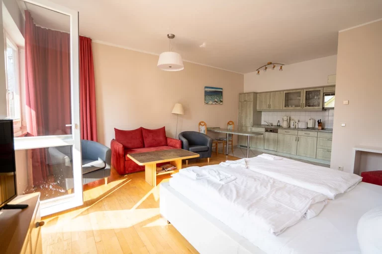 Diese attraktive Eigentumswohnung befindet sich im 1. Obergeschoss eines Wohn- und Geschäftshauses „Haus Möwenblick“ im Herzen von Warnemünde. Nur etwa 400 Meter vom Ostseestrand entfernt, können Sie fast das Rauschen der Wellen hören und sind gleichzeitig in direkter Nähe zum „Alten Strom“ und zur Warnemünder Innenstadt. Über ein gepflegtes Treppenhaus oder über die Tiefgarage gelangen Sie in die Wohnung, die eine Wohnfläche von ca. 50 m² bietet. Derzeit als charmante Ferienwohnung genutzt, verfügt sie über ein helles Zimmer mit offener Küche, ein innenliegendes Wannenbad sowie einen praktischen Abstellraum, der für zusätzlichen Stauraum sorgt. Das großzügige Zimmer überzeugt mit seiner gemütlichen Atmosphäre, wobei das Highlight der süd-west ausgerichtete Balkon ist, auf dem man die Seele baumeln lassen kann und die Ruhe des verkehrsberuhigten Bereiches genießen kann. Alle Räume sind bequem vom zentralen Flur aus erreichbar. Die Wohnung ist mit pflegeleichten Fliesen und einem Parkettboden ausgestattet. Die Beheizung erfolgt über eine Gas-Zentralheizung. Ein Kellerabteil von ca. 3 m² und ein gemeinschaftlich genutzter Fahrradkeller rundet dieses Angebot ab. Absolute Rarität ist der Tiefgaragenplatz, der für 70.000 € erworben werden kann.