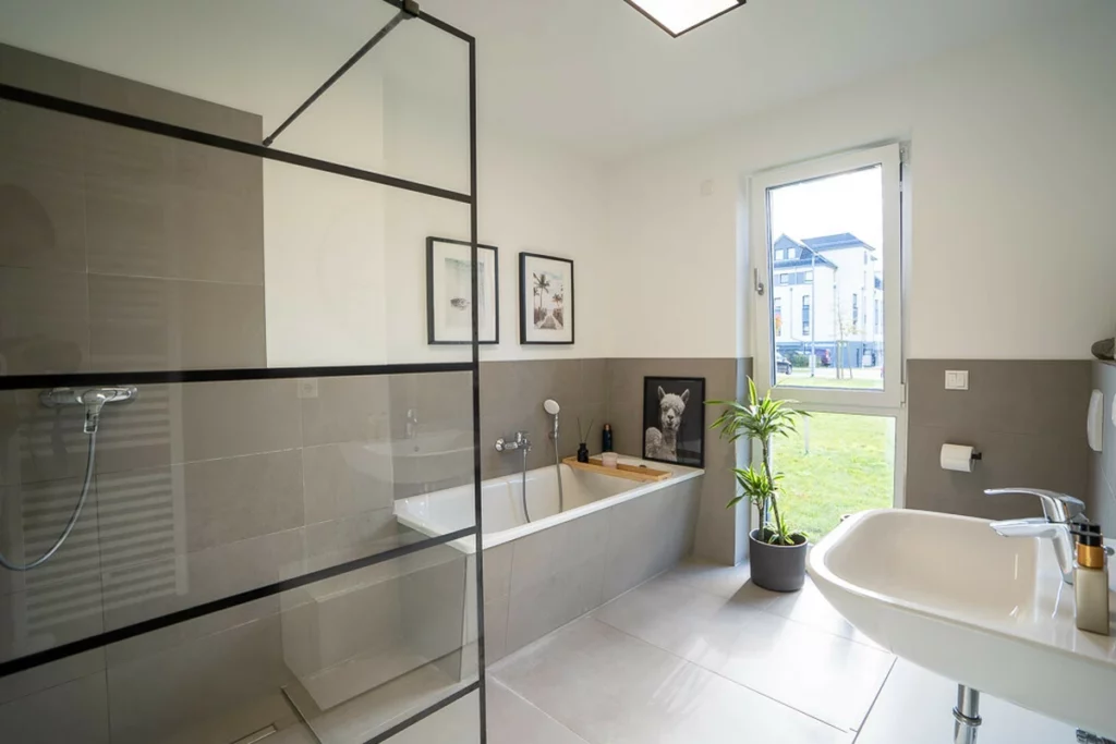 Stilvolles Vollbad mit Dusche und Wanne