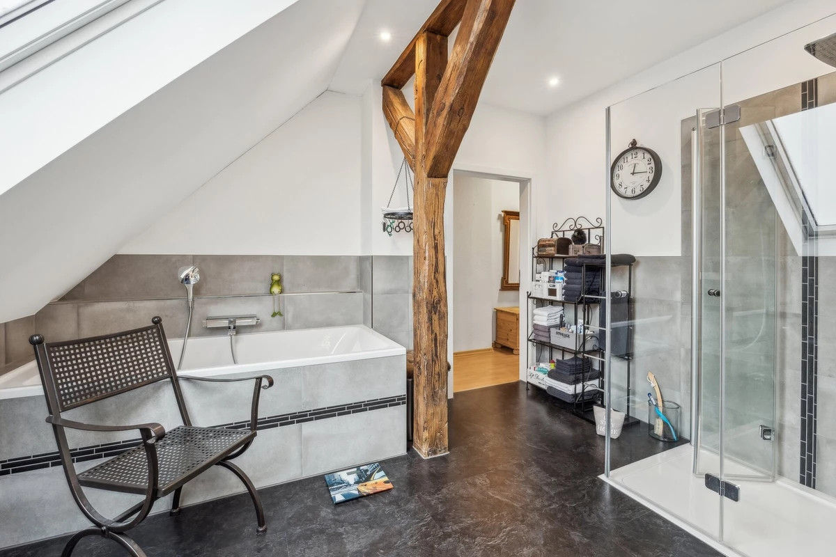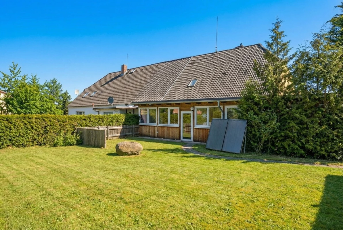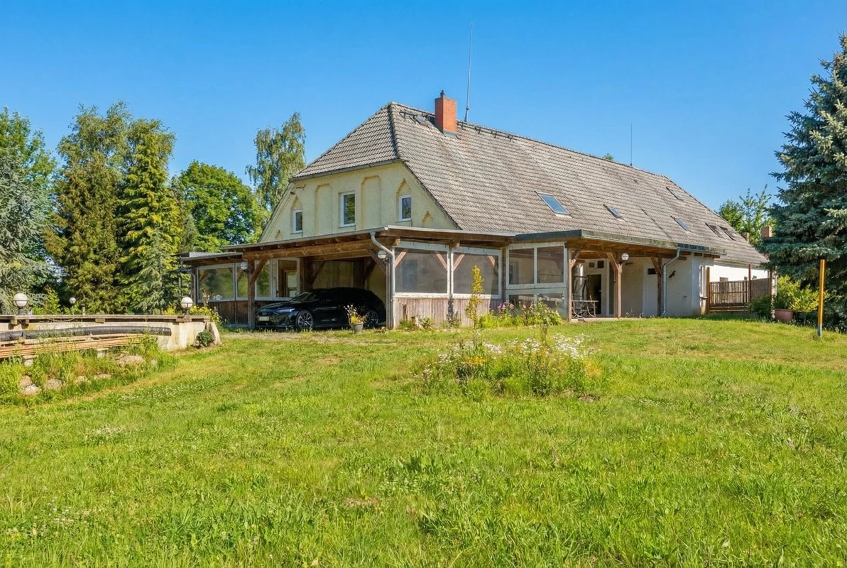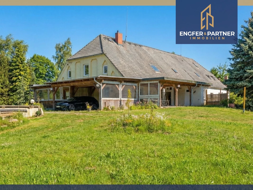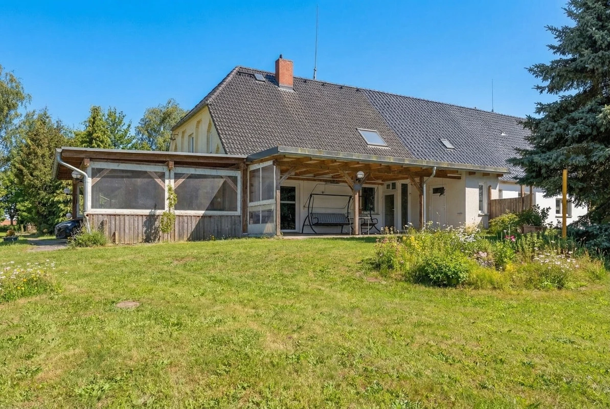 Diese charmante Doppelhaushälfte aus dem Baujahr ca. 1898 verbindet historischen Charakter mit zeitgemäßem Wohnkomfort und präsentiert sich auf einem gepflegten, rund 2.928 m² großen Grundstück in ruhiger Lage. Die Immobilie bietet ca. 161 m² Wohnfläche und überzeugt durch ihre solide Bauweise sowie zahlreiche Modernisierungen in den vergangenen Jahren. Große Räume, sichtbare Holzelemente und eine harmonische Raumaufteilung schaffen eine warme, einladende Wohnatmosphäre. Besonders hervorzuheben ist der großzügige, umlaufende Wintergarten, der das Haus erweitert und zu jeder Jahreszeit einen geschützten, lichtdurchfluteten Aufenthaltsbereich mit Blick ins Grüne bietet. So entsteht ein fließender Übergang zwischen Innen- und Außenbereich, der das Wohnerlebnis deutlich bereichert. Die Gaszentralheizung auf Erdgasbasis wurde im August 2017 erneuert, ebenso wurden die Wasserleitungen vollständig modernisiert. Ein aktiver Glasfaseranschluss sorgt für eine zeitgemäße digitale Infrastruktur. Teilweise Fußbodenheizung im Erdgeschoss erhöht den Wohnkomfort zusätzlich. Das Erdgeschoss verfügt über ein modernes, 2019 erneuertes Duschbad, während im Dachgeschoss ein großzügiges Vollbad zur Verfügung steht. Beide Bäder sind behindertengerecht. Die Innentüren wurden ebenfalls 2019 erneuert, die Fenster stammen überwiegend aus dem Jahr 1998. Das Dach wurde zu DDR-Zeiten neu eingedeckt und befindet sich bis heute in einem guten Zustand. Auf dem weitläufigen Grundstück eröffnet sich eine außergewöhnliche Lebensqualität: Großzügige Rasenflächen, gewachsene Strukturen und der direkte Zugang zum Teich verleihen dem Anwesen eine besondere Atmosphäre. Ergänzt wird das Angebot durch ein separates Garagenhaus mit praktischem Stauraum und Nutzungsmöglichkeiten, das sich ideal für Fahrzeuge, Werkstattzwecke oder Hobbyflächen eignet. Zusätzlich steht eine geräumige Scheune mit ca. 130 m² Fläche und vorhandenem Kraftstromanschluss zur Verfügung. Ein Kamin kann nachgerüstet werden.
