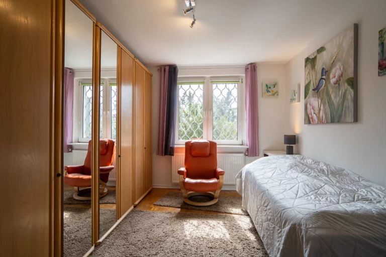 Das gepflegte Reihenhaus aus dem Jahr 1958 befindet sich auf einem ca. 195 m² großen, pflegeleichten Grundstück und bietet mit ca. 97 m² Wohnfläche ein behagliches Zuhause für eine kleine Familie oder Paare. Bereits beim Betreten des Hauses empfängt Sie ein heller Flur, von dem aus alle Räume im Erdgeschoss bequem erreichbar sind. Der großzügige Wohn- und Essbereich bildet das Herzstück des Hauses – mit direktem Zugang zur sonnigen Terrasse und dem liebevoll angelegten Garten. Ob gemütliche Grillabende, Spielmöglichkeiten für Kinder oder ein Platz für Ihre Pflanzideen – hier können Sie Ihre Freizeit entspannt im Grünen genießen. Die Küche ist funktional geschnitten und liegt separat, sodass Sie beim Kochen ungestört bleiben. Es besteht jedoch auch die Möglichkeit die Küche und das Wohnzimmer miteinander zu verbinden. Ein Gäste-WC komplettiert das Erdgeschoss. Im Obergeschoss erwarten Sie zwei helle, gut geschnittene Schlafzimmer, die sich ideal als Kinder-, Arbeits- oder Gästezimmer eignen. Eines der Schlafzimmer bietet Zugang zur Terrasse mit Markise. Ein gepflegtes Duschbad rundet das Raumangebot auf dieser Etage ab.Das wohnlich ausgebaute Souterrain mit ca. 49 m², das über eine eigene Küche, ein HWR, ein großes Schlafzimmer sowie ein Wannenbad verfügt, erweitert das Platzangebot zusätzlich. Weitere Abstellmöglichkeiten bietet der separate Kellerraum mit Zugang vom Garten – perfekt für Gartengeräte oder als Lagerfläche.